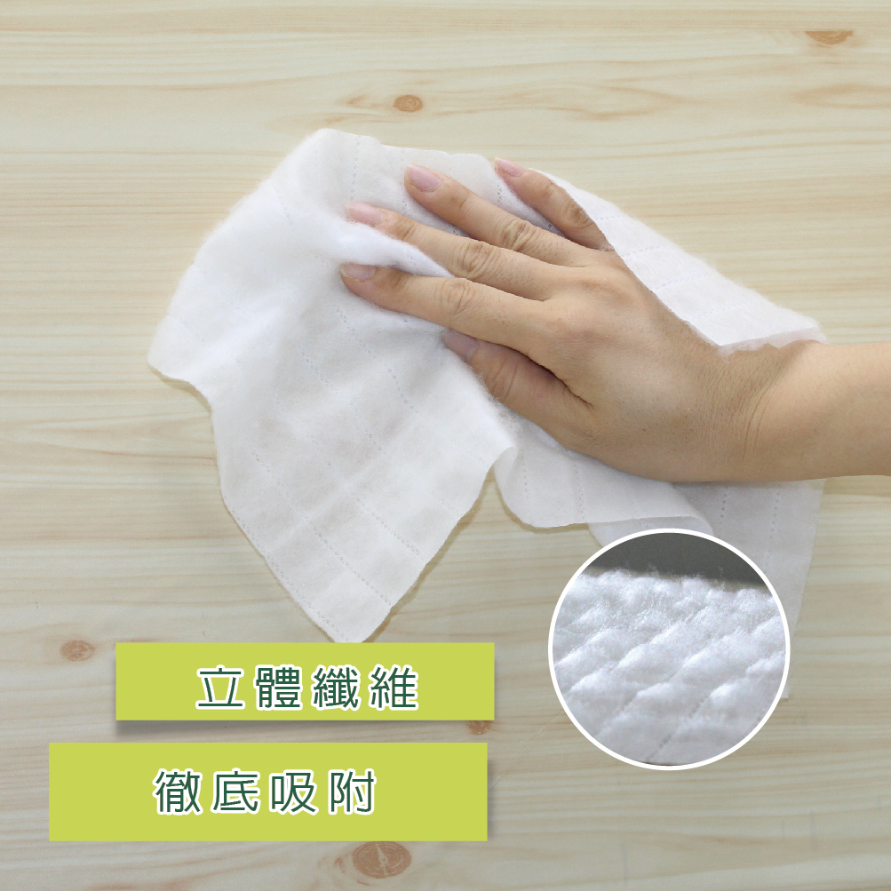 獨特立體纖維紋理設計,加強靜電吸附力,灰塵毛髮一網打盡;使用過程靜音無聲,深夜清掃也不打擾他人。乾用設計、雙面可用,用完即丟,打掃更有效率!