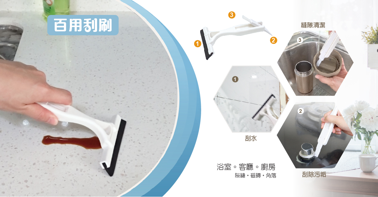 緊密貼合物面,快速刮除水漬髒污