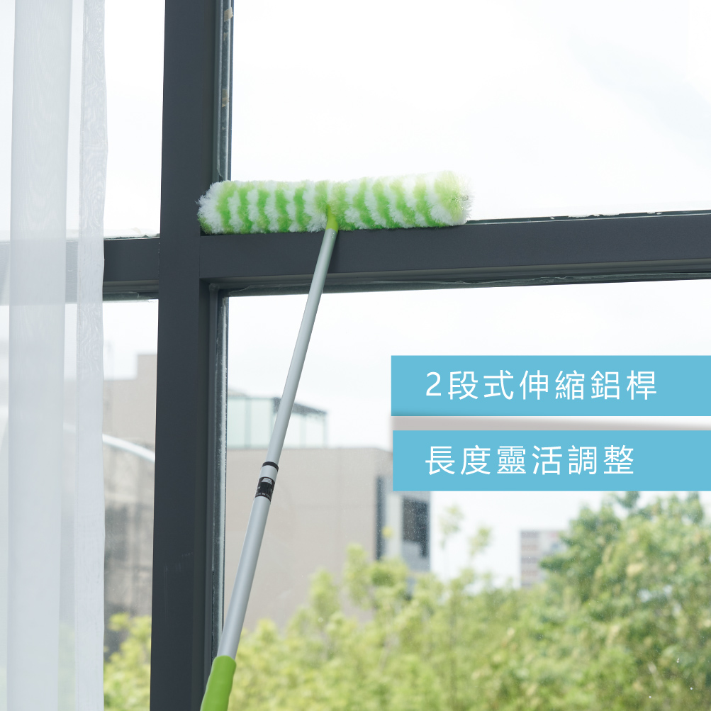 - 2段式伸縮鋁桿 — 長度靈活調整,輕鬆應對高處與難觸及區域。