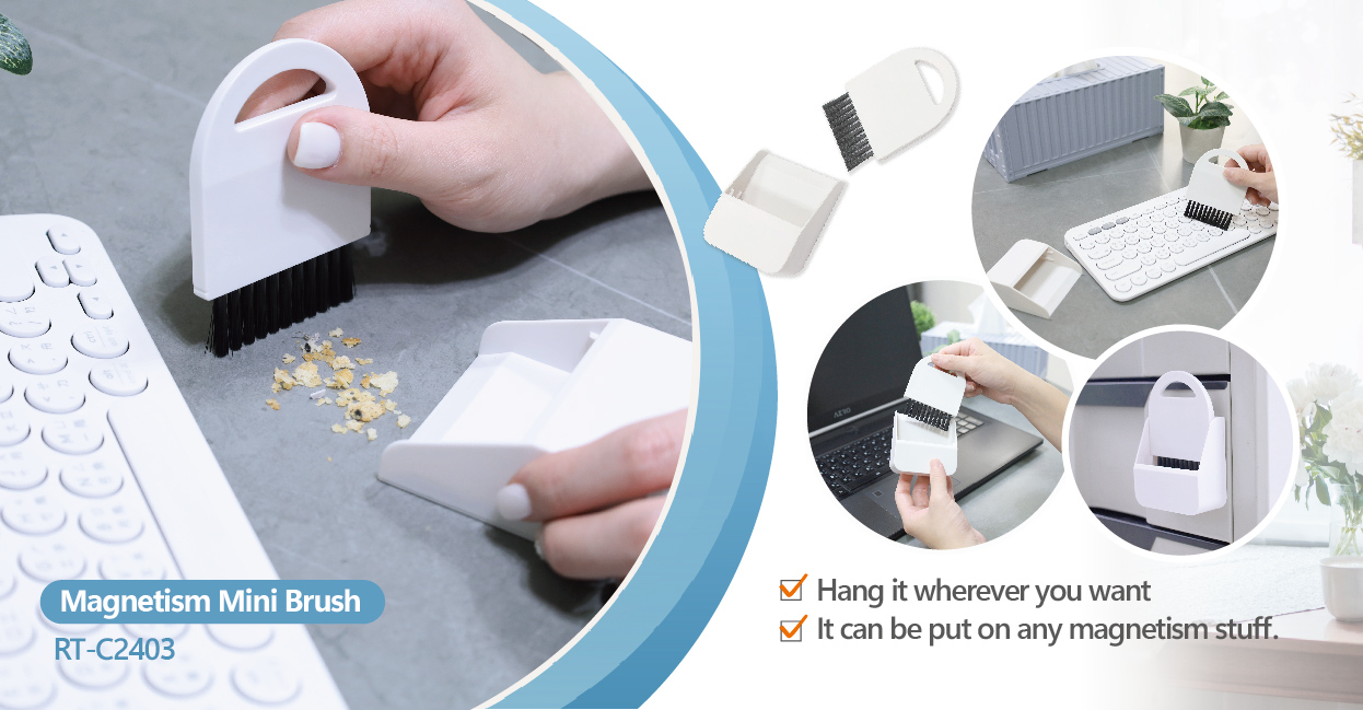 This compact desktop cleaning set features a soft-bristle brush and a matching mini dustpan with hidden magnetic storage. Designed for modern living, it easily attaches to metal surfaces for tidy, convenient storage. Whether cleaning up snack crumbs, paper scraps, or desk dust, this tool is gentle on surfaces yet highly effective. Perfect for offices, study spaces, or small households where every detail matters.