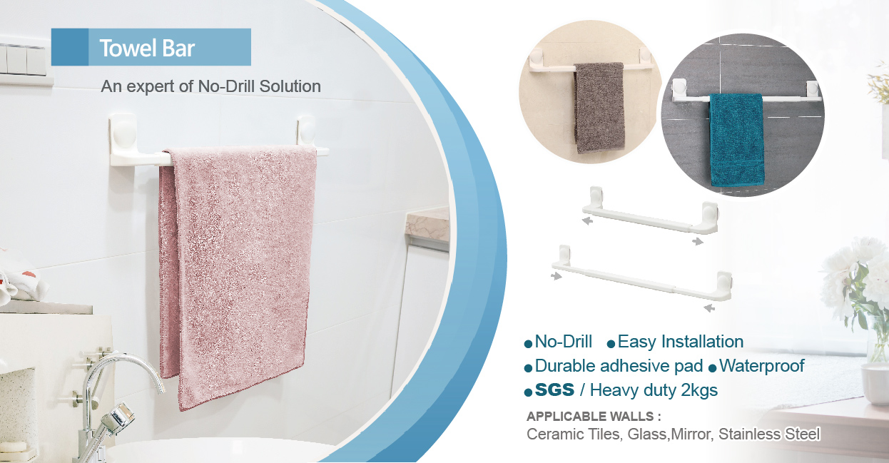 This expandable towel bar features a tool-free adhesive installation, providing secure, damage-free storage with no drilling required. Ideal for bathrooms, it adjusts to accommodate various towel sizes and is made in Taiwan with SGS-certified adhesive pads that support up to 3kg. The clean, minimalist design blends seamlessly with modern interiors, while the expandable function allows you to optimize wall space with ease.